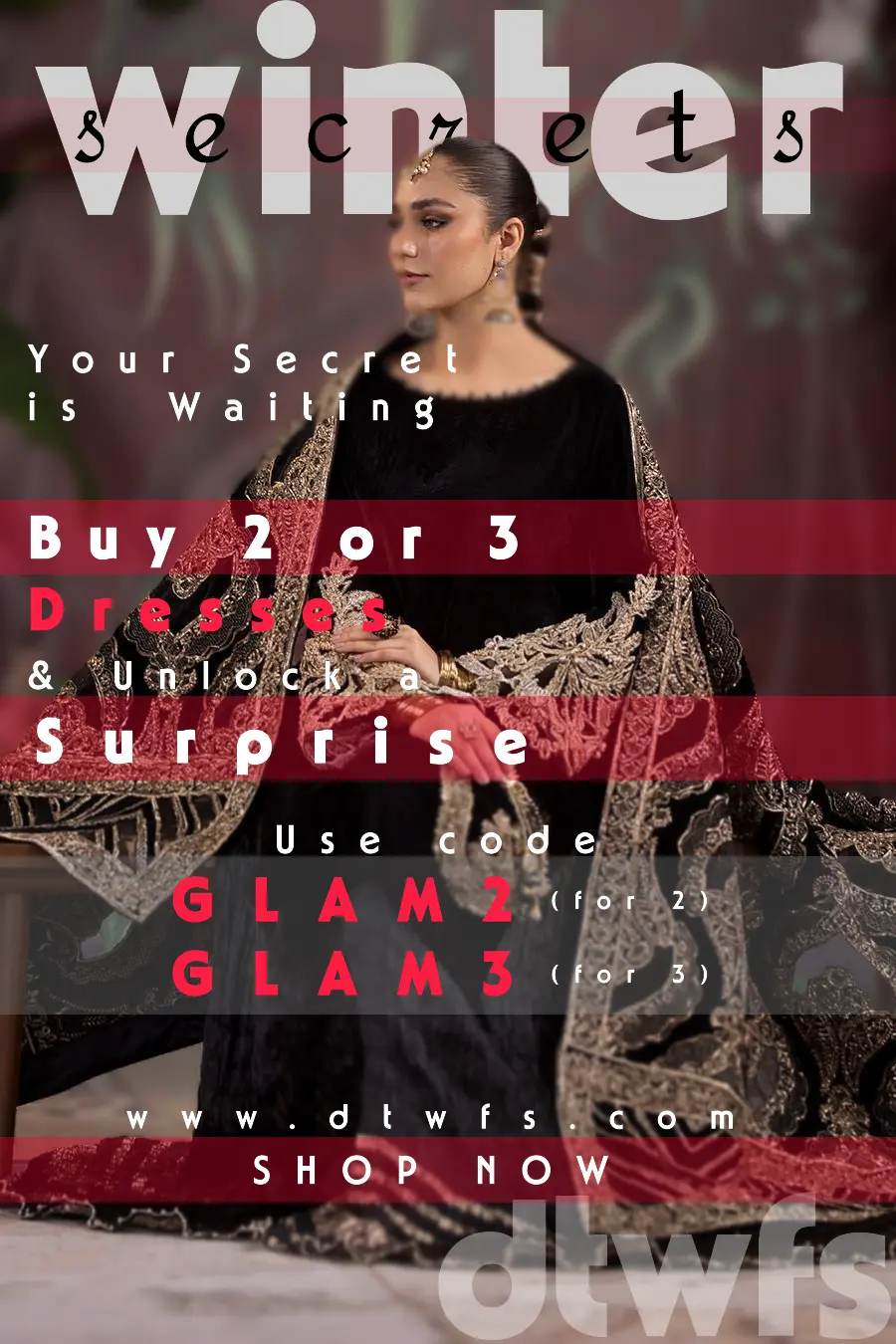 Buy any 2 or 3 dresses from our stunning collection and use promo code GLAM2/GLAM3 at checkout to reveal your exclusive surprise discount!